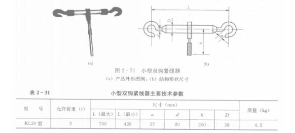 雙鉤緊線器根據(jù)制造材料的不同,分鋼質(zhì)雙鉤緊線器和鋁合金雙鉤緊線器,前者應(yīng)用多。另外還有一種套式雙鉤緊線器,在收緊狀態(tài)下,其長(zhǎng)度較小,便于攜帶。