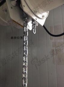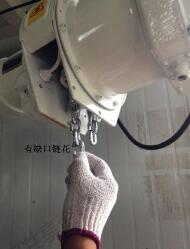 第三步:啟動電動葫蘆,首先點試,明確電動葫蘆山下方向;順利運行電動葫蘆,向上進鏈,使起重鏈條穿過葫蘆,并余留出適當(dāng)長度(30公分)