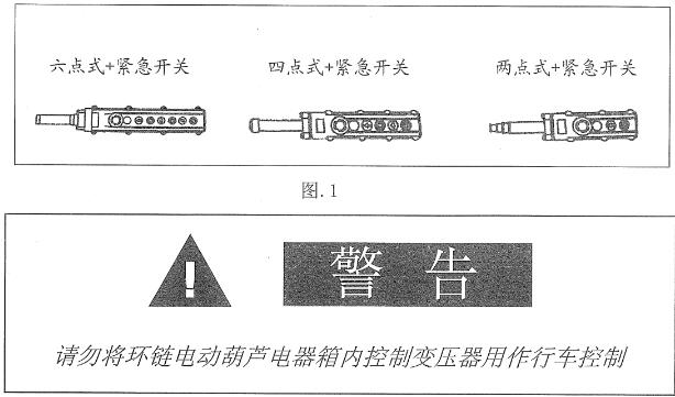 次按鈕用來(lái)在緊急的情形之下停止電動(dòng)葫蘆。它是一個(gè)紅色,蘑菇形狀的按鈕,位于按鈕開(kāi)關(guān)的最上方。當(dāng)按鈕按下時(shí),設(shè)備的電源將被切斷,而且按鈕將自動(dòng)鎖住。順時(shí)鐘旋轉(zhuǎn)可將按鈕釋放,并且可重新啟動(dòng)電動(dòng)葫蘆。