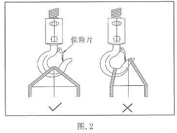 (b)吊繩的位置如下圖(附圖2)所示,而且保險(xiǎn)片必須正確的頂住吊鉤。